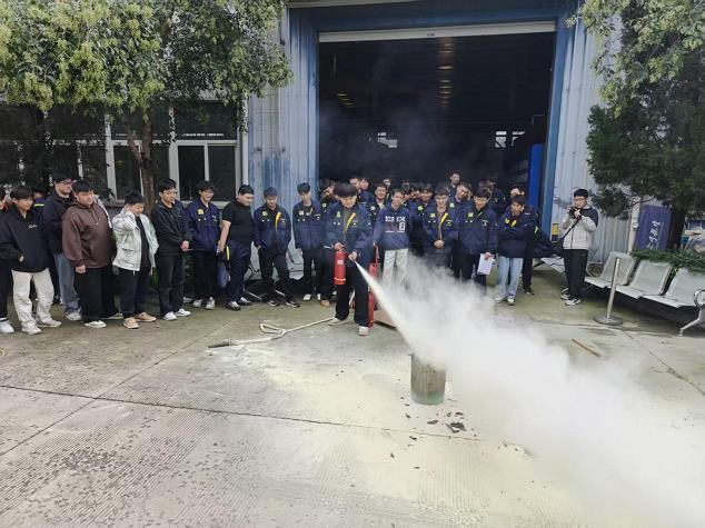 演练结束后,安全员现场演示灭火器操作步骤,提炼“提、拔、握、压”四字口诀,并指导员工、学员代表分批实操。通过模拟火源扑救,参训人员亲身体验了从判断风向到喷射灭火的全过程,切实掌握了初期火灾扑救技能。